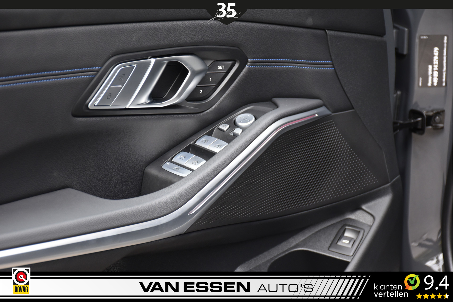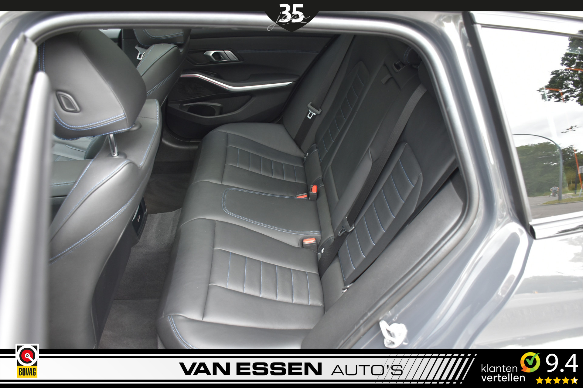Bekleding Alcantara/Sensatec combinatie Schwarz met contrasterend stiksel Blau